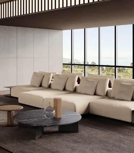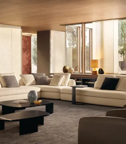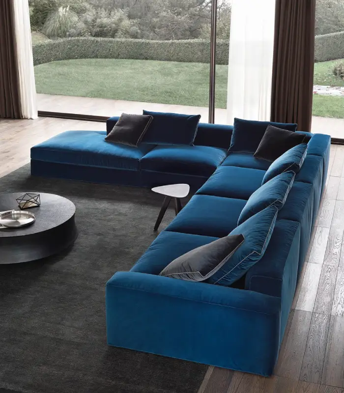 Dune is a system of padded elements with a soft and full look. It is very versatile and allows you to create an infinite number of compositions – linear, corner, with chaise longue. Available in two depths – large and extra-large – Dune is the perfect union between formal simplicity and compositional freedom.